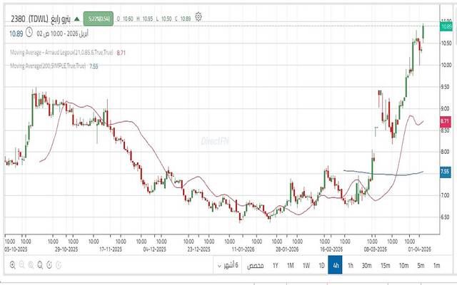 سهم "بترو رابغ" يواصل الزخم الصاعد, اليوم الخميس 2 أبريل 2026 11:43 صباحاً