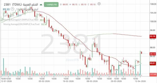 سهم "الحفر العربية" يستعيد الزخم الصاعد مع اختراق مستويات محورية, اليوم الأحد 12 أبريل 2026 03:33 مساءً