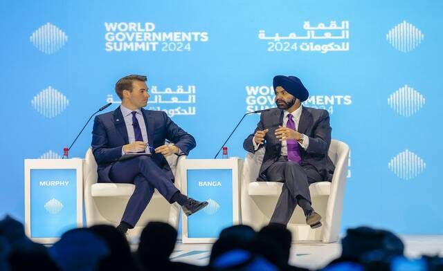 جاءت تصريحات أجاي بانغا، خلال جلسة عُقدت بحضور الشيخ مكتوم بن محمد بن راشد آل مكتوم النائب الأول لحاكم دبي نائب رئيس مجلس الوزراء وزير المالية والشيخ محمد بن حمد بن محمد الشرقي ولي عهد الفجيرة وحملت عنوان "كيف نعظم أثر جهودنا التنموية؟ حوار مع رئيس البنك الدولي"، وذلك ضمن فعاليات اليوم الأول من القمة العالمية للحكومات 2024، وفقا لوكالة أنباء الإمارات "وام"، اليوم الاثنين.