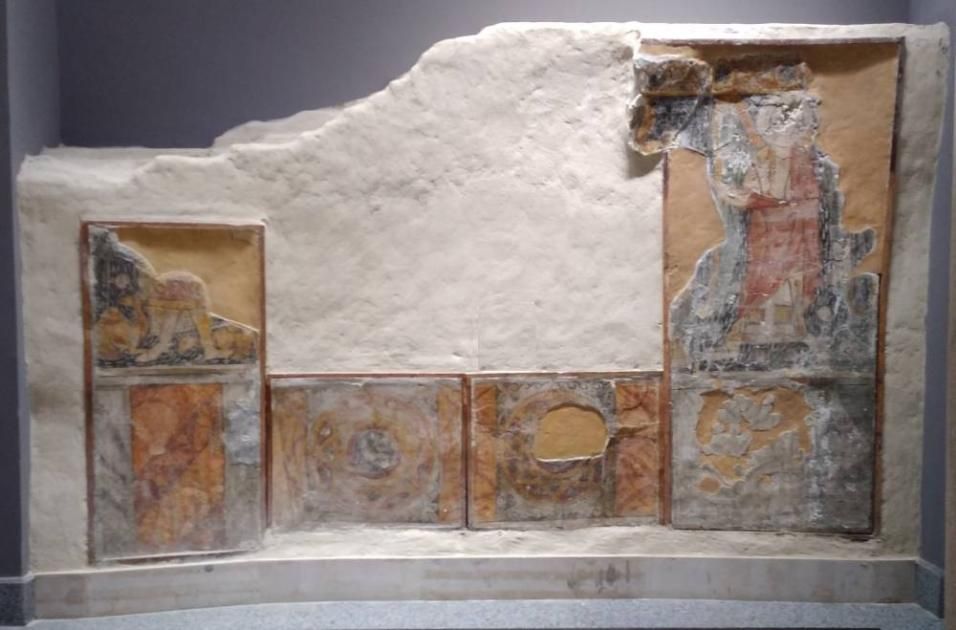 أما المتحف اليوناني الروماني بالإسكندرية، فيعرض رسماً جدارياً منفذاً بتقنية الفريسكو (الجص الملون)، يتضمن زخارف وصوراً دينية، من بينها مشهد للقديس مينا بين الجملين، إلى جانب قديس آخر محاط بهالة من نور، في تجسيد فني مميز للفن القبطي المبكر.